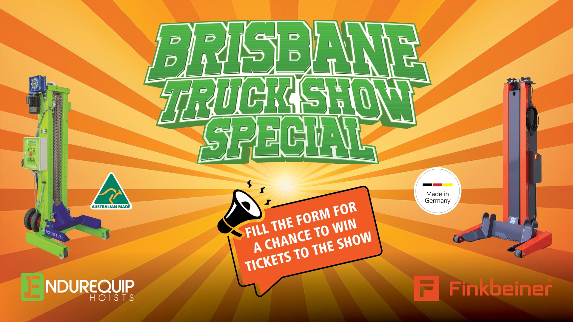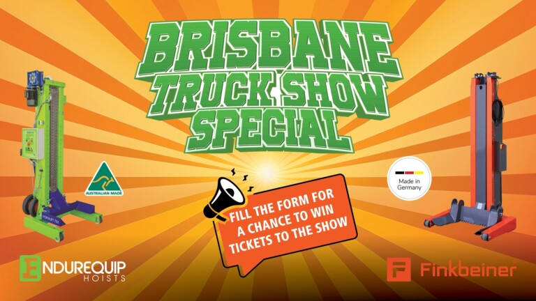 Visit our stand #297 on the Plaza Level, Brisbane Convention Centre from 15-18 May 2025 for details about our Australian-Made Endurequip Portalift and German-Made Finkbeiner wireless truck hoists, accessories and workshop handling solutions.