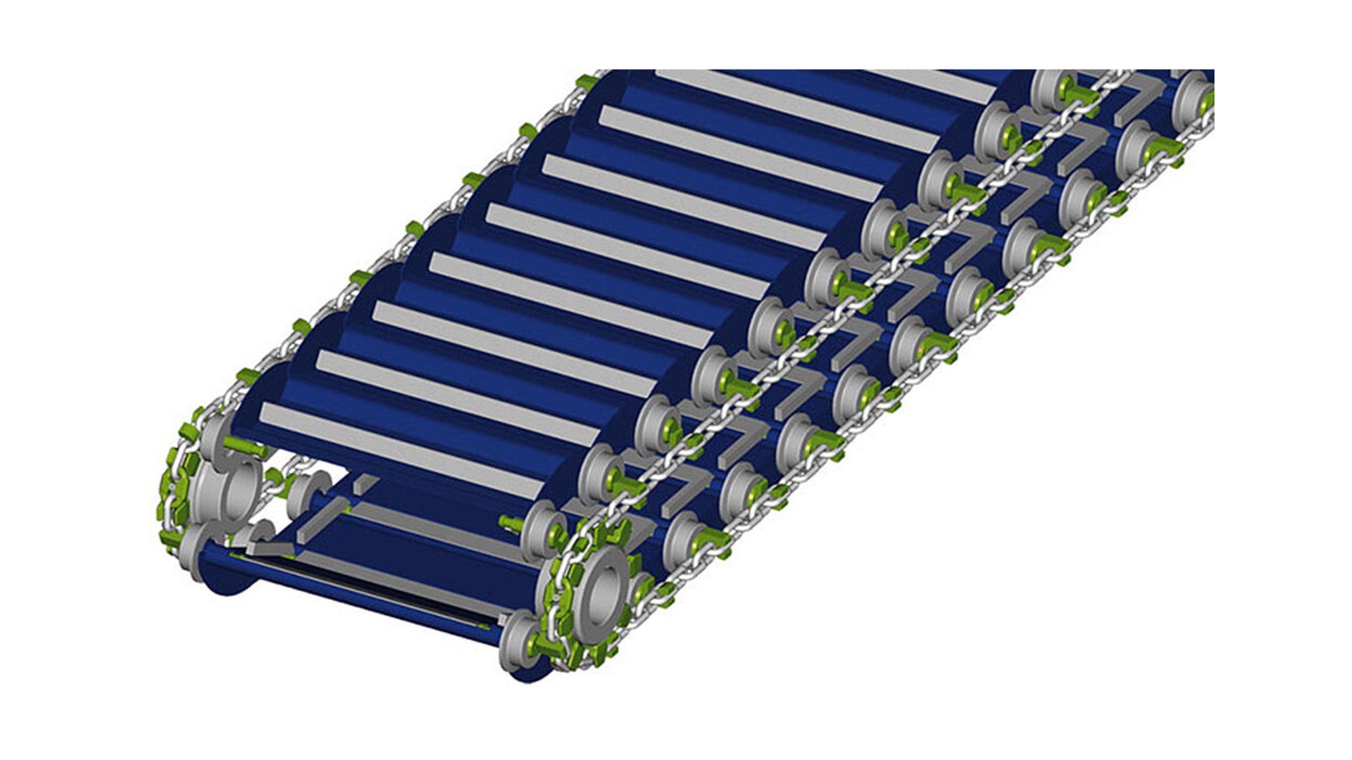 Apron feeders are conveyors in which material is carried on overlapping steel plates, known as "aprons," that travel over sprockets, rollers, and gears. These components are fabricated from high-strength steel and designed to withstand significant wear and tear. Motors and gearboxes power the feeder, enabling controlled movement of the aprons and the material they carry. RUD apron feeders are connected by conveyor chains driven by a calibrated toothed pocket wheel.