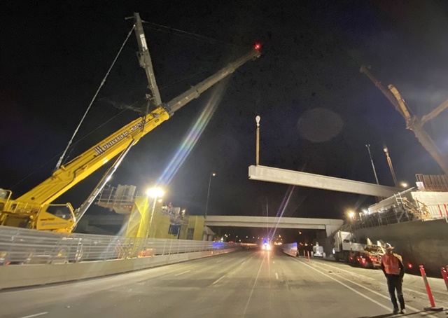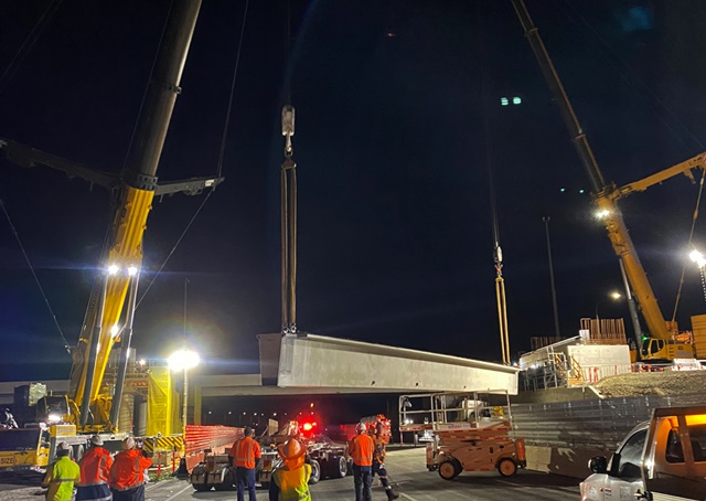 The Grove GMK7450 160t crane used in the project was located in the median strip between the northbound and southbound pavements of Pacific Highway and hence required closure of the highway for 4 nights to ensure safe installation.